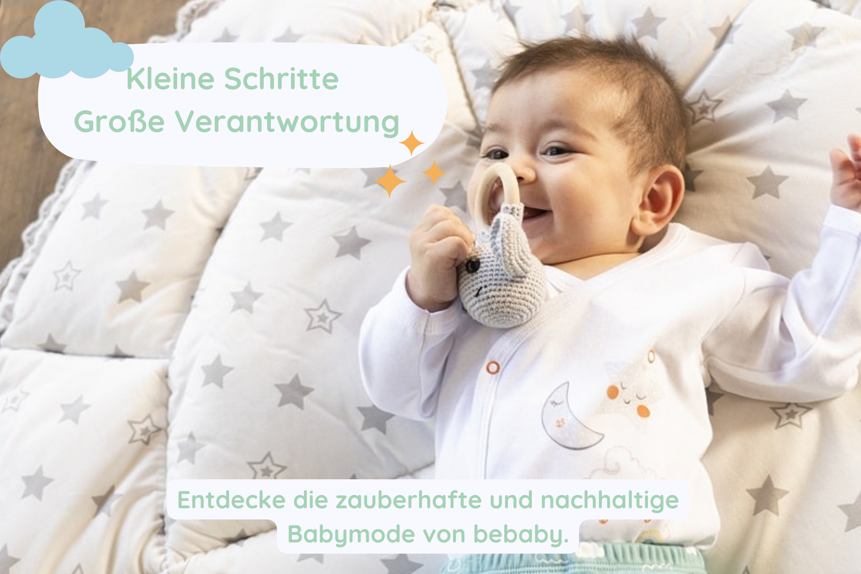In einer der spannendsten und aufregendsten Zeiten der jungen Familien und werdenden Eltern sind wir die perfekten Begleiter rund um Mode und Komfort. Dabei legen wir großen Wert auf Nachhaltigkeit und Qualität bei unseren Babyartikeln.